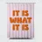 Un'opera d'arte tipografica semplice ma decisa, con la frase "It Is What It Is". Con linee pulite e un layout equilibrato, questo disegno cattura la calma accettazione del flusso della vita.