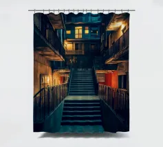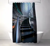 Le ringhiere metalliche tracciano la curva con fluida precisione, con un design robusto e raffinato, magari ornato da motivi ornamentali o mantenuto minimale e moderno. Freddo al tatto, il metallo brilla sottilmente, catturando la luce a ogni curva. Ogni gradino invita a salire, creando un senso di tranquilla attesa, come se la scala non conducesse semplicemente a un altro piano, ma a una storia che si svolge al di sopra.