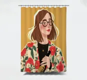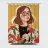 Questa opera d'arte raffigura una persona con capelli corti e biondi che indossa una giacca floreale e tiene in mano un libro. Lo sfondo giallo brillante ne esalta l'essenza chic ed elegante.