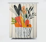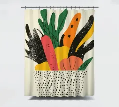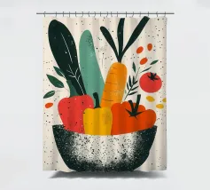 Una composizione moderna e vibrante che celebra la bellezza delle verdure. Forme astratte e colori vivaci conferiscono a questa illustrazione un'atmosfera calda e contemporanea. Perfetta per una cucina dinamica o per un interno vivace.