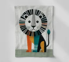 Questa affascinante illustrazione minimalista presenta un leone calmo che indossa una piccola corona e una criniera colorata, irradiando calore e tranquilla sicurezza. Con le sue linee semplici e la tavolozza moderna, l'opera d'arte cattura la forza gentile del re della giungla - perfetta per le camerette, le stanze dei bambini o gli interni allegri e contemporanei.