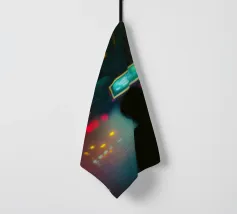 In un'esplosione di verde e giallo, due sagome si fondono con il paesaggio urbano luminoso. Una visione astratta ed elettrica che cattura l'intensità del movimento notturno, tra realtà e illusione. Ideale per chi cerca un'opera vibrante e coinvolgente.