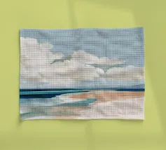 Un paesaggio astratto fatto di morbide nuvole e luce delicata, con un'atmosfera calma ed equilibrata.