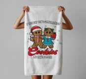 Due sorridenti biscotti di pan di zenzero sono vestiti a festa, uno con un cappello da Babbo Natale e l'altro con una mela in mano. La frase "Insegno ai biscotti più intelligenti del lotto" è stampata intorno a loro, aggiungendo un tema giocoso ed educativo.
