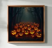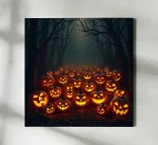 Halloween_zucche nel bosco_3 tela con Cornice a cassetta