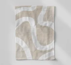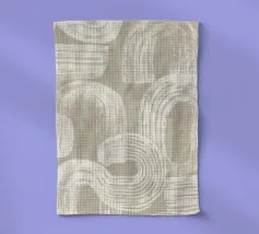 Opera d'arte astratta minimalista con linee curve bianche e beige che formano forme organiche, creando un'estetica moderna e rilassante.