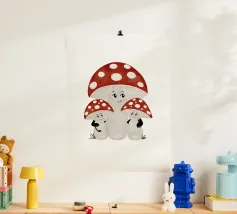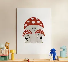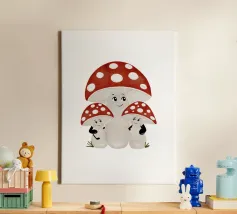 Questa simpatica famiglia di funghi emana amore e sicurezza. Con questo motivo disegnato a mano, potrete dare un aspetto simpatico alle camere dei bambini o dei neonati o anche al vostro salotto.