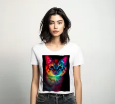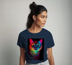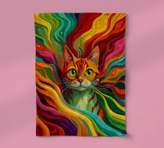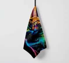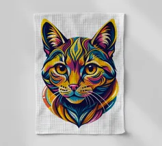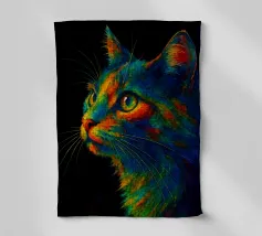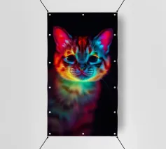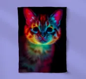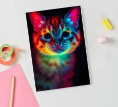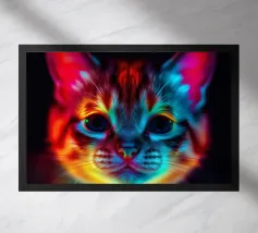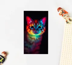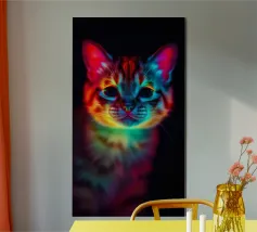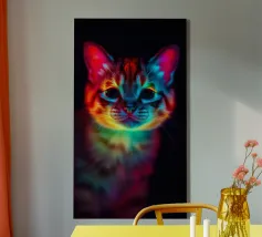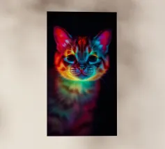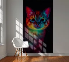 Un design di grande impatto con un gatto illuminato da colori vivaci che creano un effetto astratto. Perfetta per il WALLPAPER, questa accattivante opera d'arte attira l'attenzione con le sue ricche tonalità.