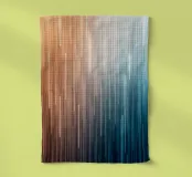 Questo sorprendente pezzo astratto cattura una transizione bella e serena, con un morbido gradiente che passa dai toni caldi e baciati dal sole sulla sinistra alle tonalità fredde e blu profondo sulla destra. La composizione è definita da una serie di linee verticali che variano in lunghezza e opacità, creando un senso di movimento e flusso dinamico. Quest'opera d'arte evoca una sensazione di tranquilla contemplazione e di moderna eleganza, rendendola un'aggiunta perfetta a qualsiasi spazio contemporaneo. È una metafora visiva dei viaggi paralleli del giorno e della notte, del caldo e del fresco, dell'alba e del tramonto.