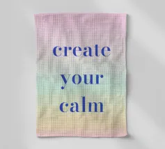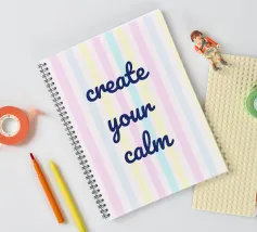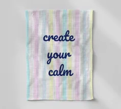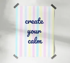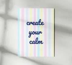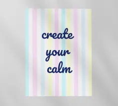 "Crea la tua calma" centrata su uno sfondo a strisce verticali in morbidi colori pastello. Semplice design clipart senza ombre, minimalista e chiaro - ideale per vibrazioni calme ed equilibrate con un look moderno.