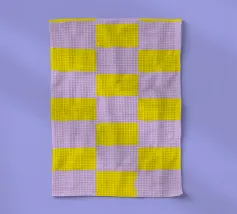 Illustrazione digitale di un motivo a scacchiera viola e giallo. Disegno originale creato su Procreate.