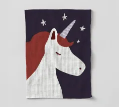Questa giocosa illustrazione mostra un unicorno rosa con puntini su uno sfondo arancione e verde, perfetto per le camere dei bambini o per le decorazioni estive. La grafica dipinta a mano combina elementi fantasiosi con un design minimalista e crea un'atmosfera allegra che irradia gioia e creatività.