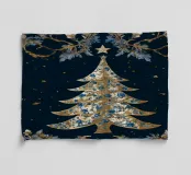 Al centro si trova un bellissimo albero di Natale, ornato da motivi floreali e da una stella, su uno sfondo scuro perfetto per le decorazioni natalizie.