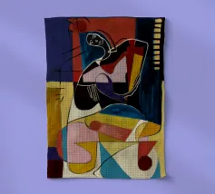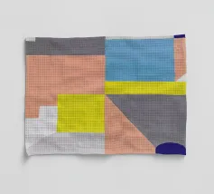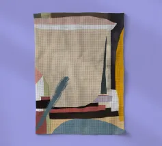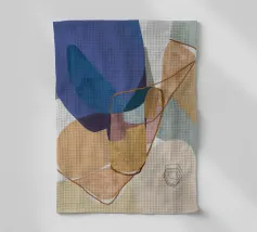 Un'astrazione geometrica composta da forme sovrapposte in toni freddi e caldi. La composizione gioca con lo spazio e il vuoto, invitando lo spettatore a interpretarne la tensione architettonica e lo spazio negativo dinamico.