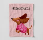 Un'espressione tedesca scherzosa catturata in un'affascinante forma visiva: "Hereingedackelt" si traduce vagamente con qualcuno che entra a passo di marcia o al trotto, come un bassotto che fa il suo ingresso.