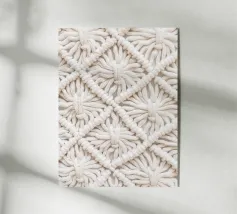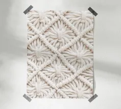 Questo suggestivo motivo macramé sottolinea perfettamente l'eleganza dello stile boho. La dettagliata lavorazione artigianale, con le sue strutture intrecciate e i suoi colori naturali, crea un'atmosfera calda e moderna. Ideale per opere d'arte da parete, cuscini, cover per cellulari e molto altro, questo disegno è perfetto per gli amanti dell'artigianato e dell'estetica boho. Aggiunge un tocco naturale e rilassante a qualsiasi stanza ed è perfetto per creare un ambiente accogliente ed elegante. Un motivo senza tempo che porta il fascino dell'arte tessile in casa.