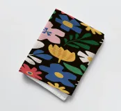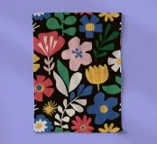 Un disegno denso e gioioso di vari fiori dai colori vivaci e allegri su uno sfondo scuro. Questa opera d'arte è una celebrazione di un giardino fiorito in tutta la sua diversità e bellezza.