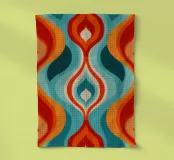 Quest'opera d'arte è un'illusione ottica ipnotica e un omaggio all'arte psichedelica e all'op art della fine degli anni '60 e dell'inizio degli anni '70. Forme curve e fluide in rosso fiammeggiante e arancione caldo incontrano i toni freddi del turchese e del blu-verde, creando una tensione dinamica, ardente ma acquatica. La simmetria verticale e i motivi stratificati a forma di goccia ricordano i disegni iconici di tessuti e carte da parati dell'epoca. Il motivo crea un'incessante attrazione visiva e sembra quasi respirare. Un richiamo visivo energico e ipnotico.