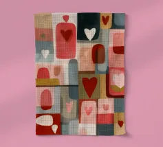 A cheerful and heartwarming patchwork of stylized plants, vibrant patterns, and a large, loving heart. This eclectic artwork is a joyful celebration of love, growth, and handcrafted beauty.