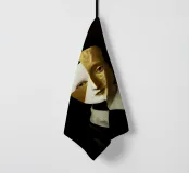 Un suggestivo collage astratto con un volto femminile monocromatico parzialmente oscurato da elementi vintage e dorati. Forme geometriche si intersecano in tutta la composizione, mescolando una morbida ritrattistica in scala di grigi con una ricca lamina d'oro e con texture rovinate dagli agenti atmosferici. L'estetica evoca sia il minimalismo moderno che il collage classico, creando una tensione visiva surreale ma elegante. Perfetto per interni contemporanei, pareti di gallerie o stampe d'effetto che bilanciano mistero e raffinatezza.