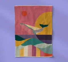 Mid century illustration of a bottle of Rum, complete with whale :)