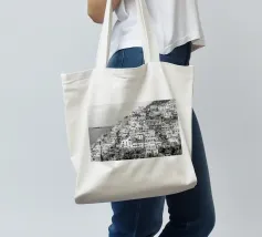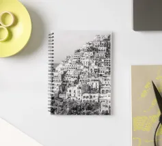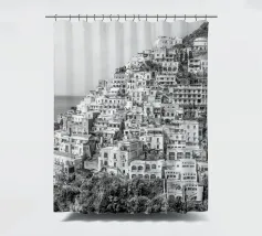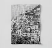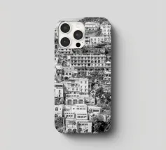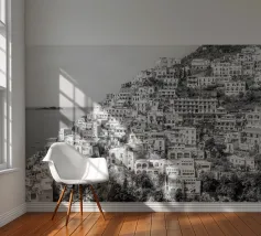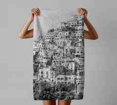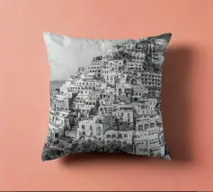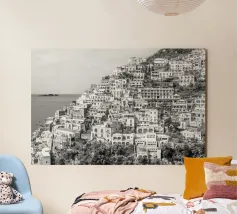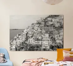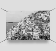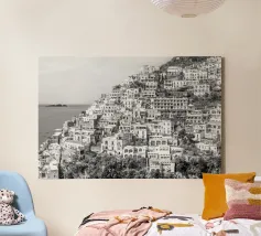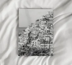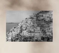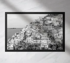 Vista su Positano. Positano nella splendida Costiera Amalfitana. Fotografia di strada e architettura in Italia. Fotografia in bianco e nero.