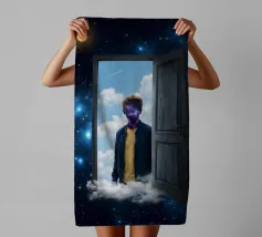 Questa suggestiva opera d'arte in bianco e nero raffigura un astronauta in piedi nell'acqua calma e riflettente, mentre un portale torreggiante si apre davanti a lui. Morbide nuvole circondano la scena, creando un'atmosfera onirica, mentre una colomba bianca sale attraverso il portale, simboleggiando speranza, pace e trascendenza. Il contrasto tra immagini futuristiche ed elementi sereni e spirituali evoca mistero e introspezione. Perfetto per gli amanti dell'arte surreale, dei temi fantascientifici e del design monocromatico minimalista, questo pezzo aggiunge profondità, emozione ed eleganza moderna a qualsiasi spazio.