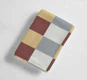 Un motivo di quadrati colorati alternati crea un effetto scacchiera con sfumature di beige, grigio e marrone. Il disegno a griglia รจ simmetrico e uniforme.