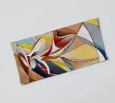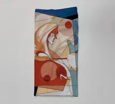 Quest'opera d'arte presenta una composizione contemplativa e introspettiva con un mix di forme geometriche e organiche. La tavolozza dei colori comprende blu, rosso e beige, creando un senso di equilibrio e armonia. La disposizione ponderata di forme e colori ne fa un'opera accattivante.