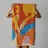 Forme astratte e brillanti nei toni caldi del rosso, dell'arancio e del giallo si intrecciano con sezioni blu e rosa tenue. La composizione presenta linee audaci e fluide, creando un effetto visivo energico e dinamico.