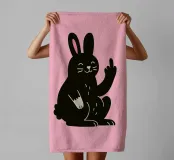 Questo poster sfacciato con un simpatico coniglio nero illustrato su uno sfondo rosa acceso offre il massimo contrasto tra un look zuccheroso e un messaggio chiaro. Il coniglietto sorridente fa con nonchalance il dito medio: una dichiarazione ironica per chiunque abbia senso dell'umorismo, attitudine e un debole per l'arte animale ironica. Perfetto per uffici, appartamenti condivisi o spazi creativi.