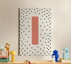 Il design giocoso con la lettera "I" in rosso brillante su un motivo a punti neri è un elegante richiamo per gli occhi. Perfetto per le camere dei bambini, per gli ambienti moderni o come idea regalo con un tocco personale. La chiara tipografia combinata con un motivo di ispirazione scandinava aggiunge un accento affascinante a qualsiasi stanza. Ideale da abbinare ad altre lettere della serie.