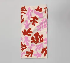 Moderno motivo leopardato in colori a contrasto forti e di tendenza. Rosso, rosa e abricot. Alcuni prodotti hanno un cuore con questo motivo.