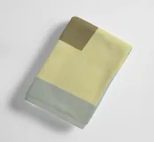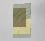 Diverse forme geometriche dai colori tenui sono sovrapposte a uno sfondo chiaro. Un rettangolo color oliva opaco domina una parte della tela, sovrapponendosi parzialmente a una forma giallo pallido, con un accenno di blu che fa capolino da sotto.