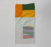 La composizione รจ dominata da audaci blocchi di colore, con un'enfasi sull'arancione e sul verde nella parte superiore e uno sfondo chiaro piรน tenue. Un rettangolo piรน piccolo con un disegno multicolore e stratificato รจ centrato sullo sfondo chiaro, creando un contrasto sorprendente.