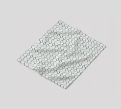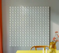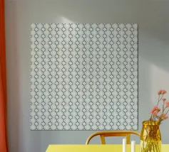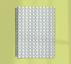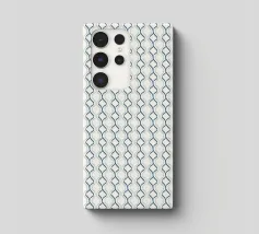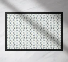 Un motivo geometrico ripetuto, composto da linee ondulate e intrecciate, crea un disegno visivamente dinamico. L'uso di linee scure su uno sfondo chiaro accentua il flusso ritmico dell'intera immagine.