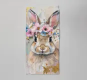 Questo design moderno presenta un simpatico coniglio con fiori sulla testa. Disegnato con delicati acquerelli e accenti dorati, unisce la bellezza naturale all'eleganza artistica. Le morbide sfumature di colore e lo stile astratto conferiscono a qualsiasi ambiente un'atmosfera romantica e giocosa, ma allo stesso tempo elegante: un vero e proprio colpo d'occhio per la vostra casa.