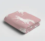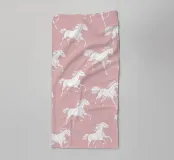 Scoprite un motivo senza cuciture con eleganti cavalli bianchi in movimento, su uno sfondo rosa tenue. Perfetto per aggiungere un tocco di grazia e fascino a qualsiasi progetto di design.
