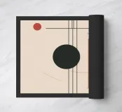 Dieses einzigartige Motiv kombiniert geometrische Formen mit einer harmonischen Farbpalette aus Grün, Schwarz und Rot auf einem warmen beigen Hintergrund. Die präzise Anordnung von Linien, Kreisen und Halbkreisen verleiht dem Design eine moderne und zugleich kunstvolle Ausstrahlung. Perfekt für Wandbilder, Kissen, Handyhüllen und vieles mehr – ideal für alle, die zeitgenössische Ästhetik in ihren Alltag integrieren möchten.