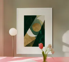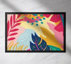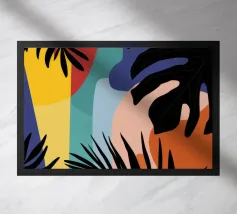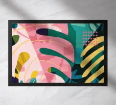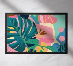 Una giocosa composizione astratta, ricca di audaci forme ispirate alla giungla e di pennellate vivaci. Questo disegno a mano combina verde acqua, blush, senape e menta in un layout gioioso e contemporaneo, perfetto per ravvivare gli interni moderni con un tocco tropicale.