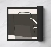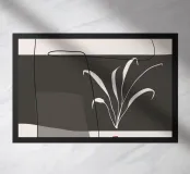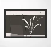 Linee astratte e blocchi di colori tenui creano una composizione moderna dall'estetica minimalista. La forma stilizzata di una pianta e quella semplice di un vaso aggiungono elementi organici, in contrasto con le forme geometriche.