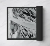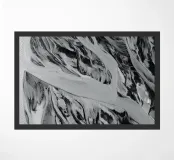 Ripresa astratta da drone di un fiume glaciale sulla costa meridionale dell'Islanda. Ripresa decorativa in bianco e nero da un drone o vista aerea di un grande fiume in Islanda.