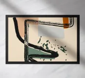 Forme astratte e linee decise si fondono in un equilibrio di colori tenui, creando una composizione dinamica. Le forme organiche si intrecciano, mentre sprazzi di verde aggiungono profondità e movimento.