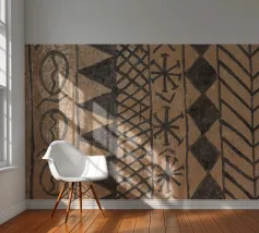 Motivo africano dipinto sul muro. In Burkina Faso. Architettura in Africa occidentale.