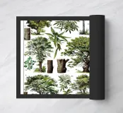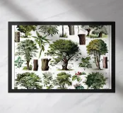 Un'intramontabile illustrazione d'epoca di Adolphe Millot che presenta diversi alberi con dettagli sorprendenti. Questa opera d'arte botanica unisce la precisione scientifica all'eleganza artistica, rendendola perfetta per gli amanti della natura, gli interni classici o gli spazi educativi. Un bellissimo pezzo d'arte di storia naturale che conferisce fascino organico e raffinatezza a qualsiasi parete.