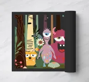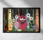Un divertente gruppo di mostri nella foresta di notte, circondati da fiori, funghi e luci magiche. Questo disegno è giocoso, creativo e perfetto per tutti gli appassionati di mostri e di fantasy.