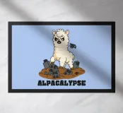 Un alpaca gigante sovrasta una città in rovina con un volto arrabbiato e un elicottero che vola nelle vicinanze. Questa opera d'arte è una divertente parodia che mescola la morbidezza degli alpaca con un'atmosfera da mostro apocalittico. Perfetto per i fan dei film kaiju, per gli amanti degli animali con senso dell'umorismo e per tutti coloro che amano i disegni bizzarri dei cartoni animati.