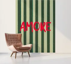 Questa stampa presenta la parola "AMORE" in caratteri rossi su uno sfondo a strisce verdi chiare e scure. Un'opera d'arte elegante, ideale come regalo per gli amanti della decorazione moderna, del romanticismo e dell'arte da parete ispiratrice - perfetta per salotti, uffici e occasioni speciali.