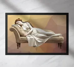 Amore e Psiche (stile Lowpoly) ispirazione da Louis Jean Francois Lagrenee (1767). Venere mandò suo figlio Cupido a punire Psiche, la cui bellezza era stata paragonata alla sua. Ma Cupido e Psiche si innamorarono. Per mantenere il segreto del loro amore, Cupido indossò un travestimento durante le sue visite notturne alla camera da letto di lei. Le sorelle gelose di Psiche rivelarono la sua identità e lei fu punita con una serie di dure prove. Alla fine Cupido e Psiche si ricongiunsero nell'amore eterno.