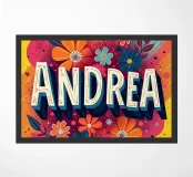 Andrea "la coraggiosa", un'opera d'arte che impreziosisce il nome con fiori e cuori.